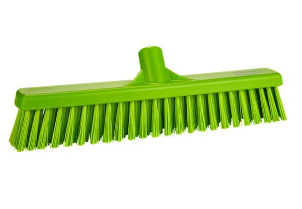 These Vikan 3174 Industrial Combo Push Brooms, with soft/stiff combo bristles, are from Vikan®, hygienic and efficient cleaning, and are available in a variety of colors making them perfect for HACCP Programs.