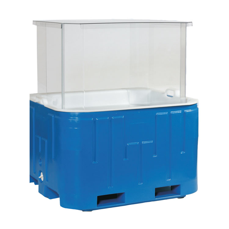 This clear acrylic guard is designed to fit around three sides of the IB2100 display insulated container to provide additional protection for product while being displayed in the ice tray.
